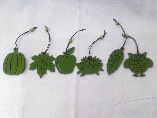 filcové závěsky, velikost cca 5 x 5 cm, sada 36 ks (6 druhů po 6 kusech), cena za sadu