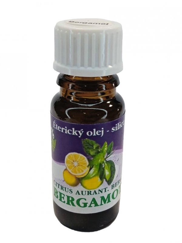 Máte pocuchané nervy, protože je stresu někdy zkrátka už moc? Bergamot éterický olej je balzám na nervy, protože uvolňuje nervové napětí a úzkost. Ve směsi s eukalyptem zlepšuje dýchání a spolu s citronem působí proti bolestem v krku při angíně. Krásně čistí vzduch a s citronem a myrtou vyčistí i zakouřené místnosti. Příznivě působí při infekcích močových cest (koupel). Silici jsme získali lisováním čerstvého oplodí. Bergamot se kombinuje s citronem, levandulí,gerániem, jasmínem a ylang-ylang. Olej lze využít k inhalaci, do koupele, k masáži a při výrobě kosmetiky (působí proti akné, podporuje hojení, dále vody po holení, parfémy). Olej nepoužívejte neředěný (pouze 0,5 – 1% koncentrace), není určený k vnitřnímu užití a na pokožce může reagovat se sluncem.