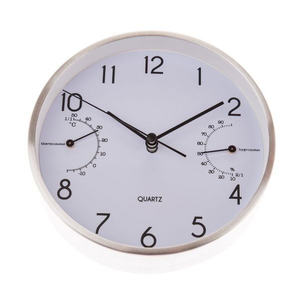 Hodiny na zeď/na stůl s teploměrem a vlhkoměrem - 15cm (hliník), 1/40