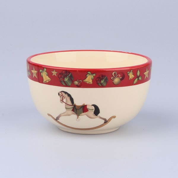 keramická miska s potiskem houpacího koníka, miska může mít na některých místech popraskanou glazuru, jinak je funkční