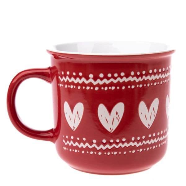 Keramický hrnek se srdci, červený, 450ml, 6/36