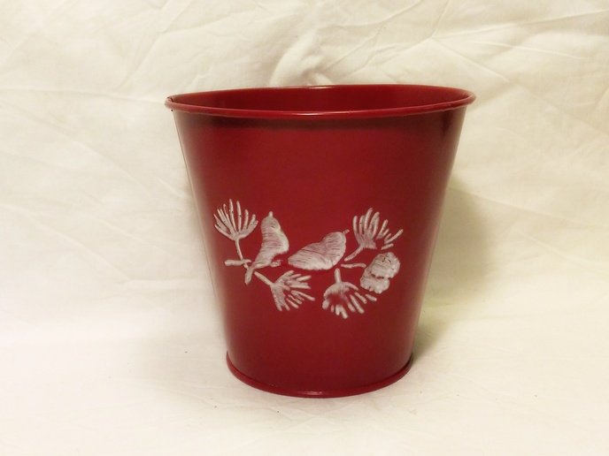 Plechový květináč s ptáčky