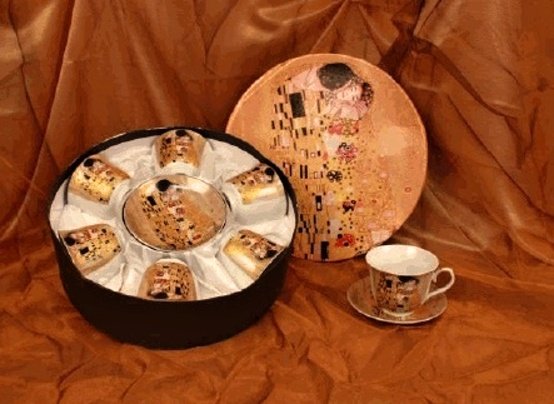 sada šesti šálků s podšálky - motiv Klimt - Polibek velikost presso