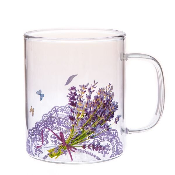 Fotky produktu Skleněný hrnek - levandule, 410ml, 6/48