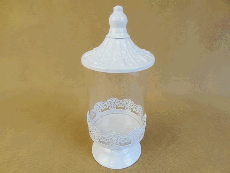 Fotky produktu Skleněný svícen s kovovou pokličkou