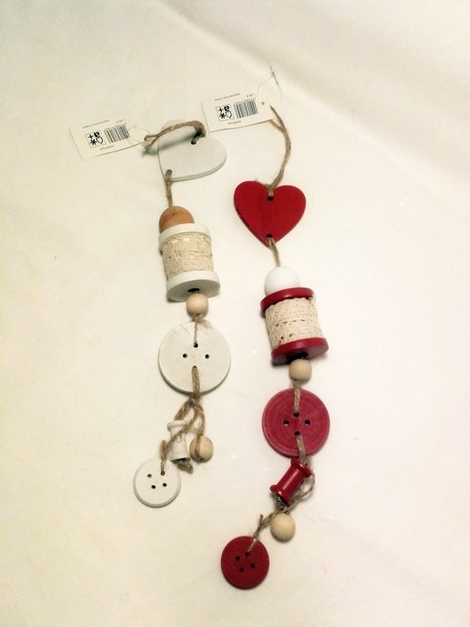 dřevěná závěska - špulka, sada 2 ks, celková délka 37 cm, cena za sadu