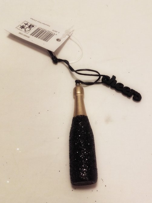 závěsná ozdoba - lahvička s nápisem "cheers", 7 cm